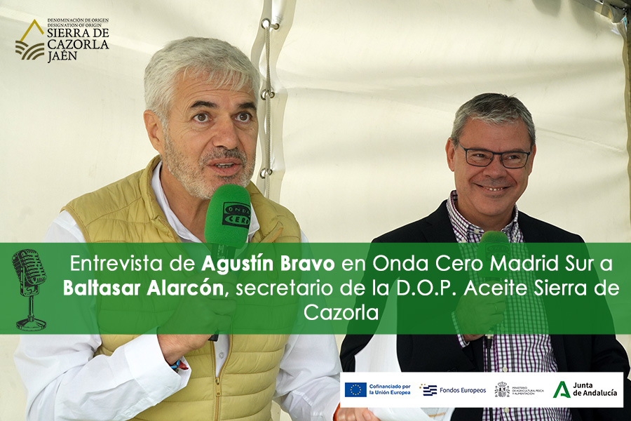 El comunicador Agustín Bravo entrevista al secretario de la DOP, Baltasar Alarcón, y, además de ensalzar los valores del AOVE DOP Sierra de Cazorla, su calidad y sus grandes cualidades nutricionales y para la salud, han hablado de la presente campaña.