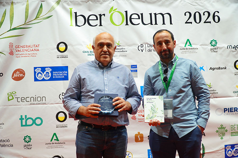 Y el último día de la feria tuvo lugar el acto de entrega de galardones de la prestigiosa Guía Iberóleum 2026, que premia a los mejores aceites de oliva virgen extra de España. El AOVE Sierra Santo Tomé, variedad Picual, de la cooperativa Santo Tomás Apóstol, ha logrado 96,3 puntos en la categoría de Intensos, y el gerente de la cooperativa, Eduardo Jiménez, fue el encargado de recoger el premio. ¡Enhorabuena!